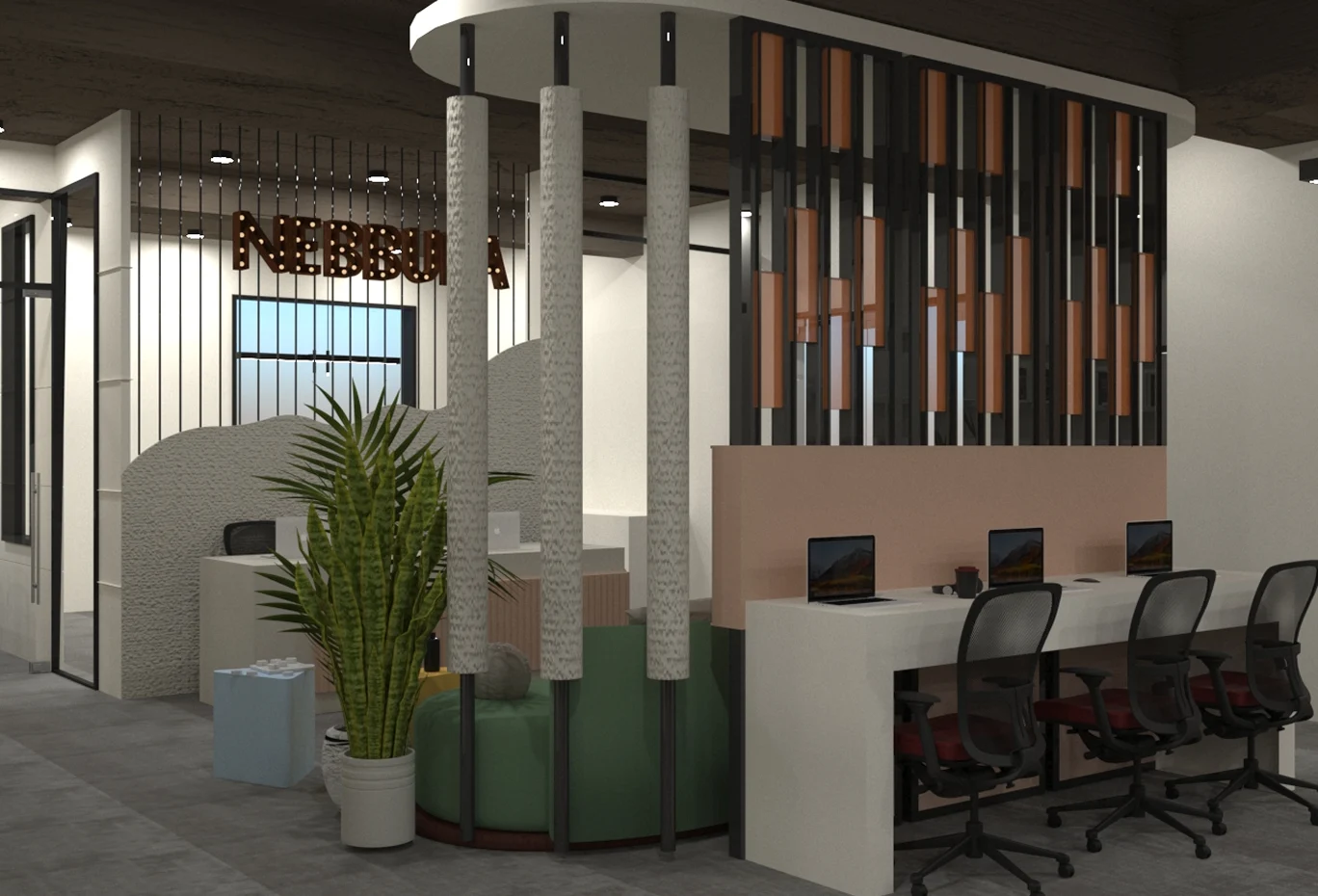 Every square foot at Nebbula Space is intentionally designed to enhance productivity and well-being. From acoustically optimized cabins to collaborative lounges filled with natural light, our environment supports focus, creativity, and seamless teamwork.